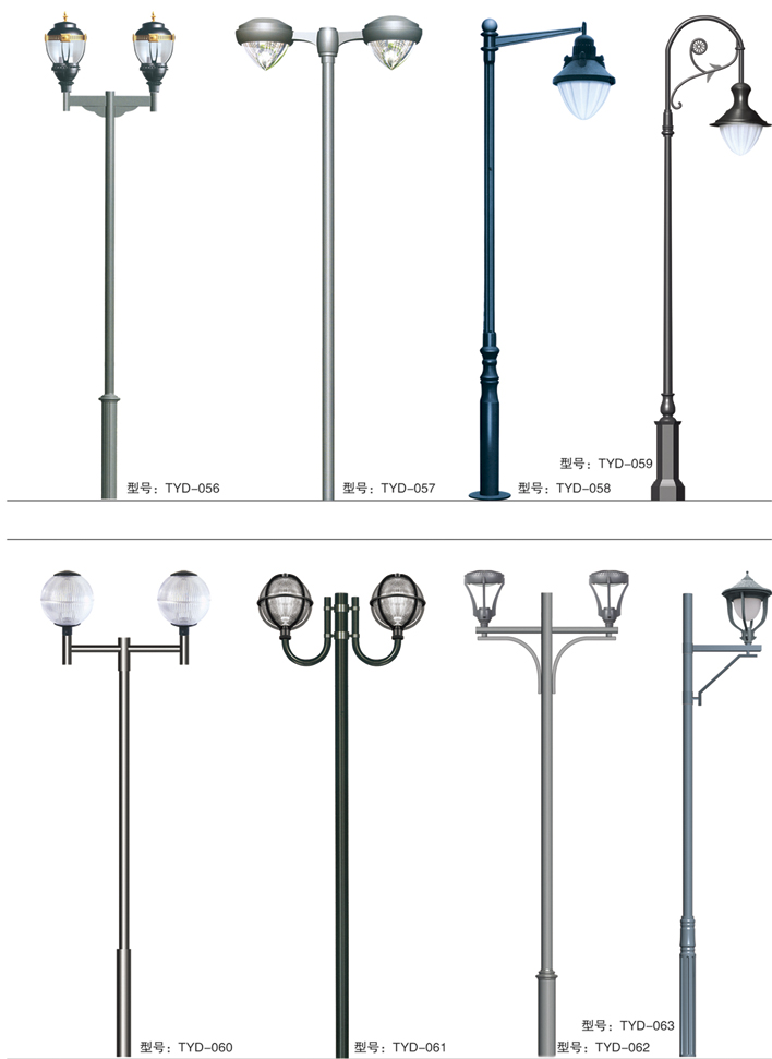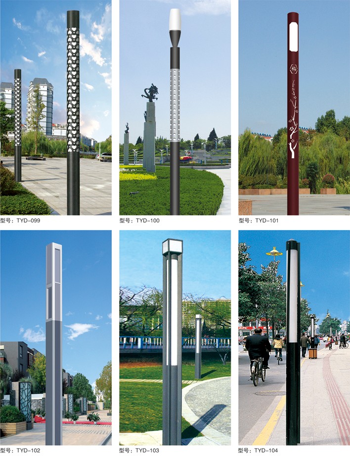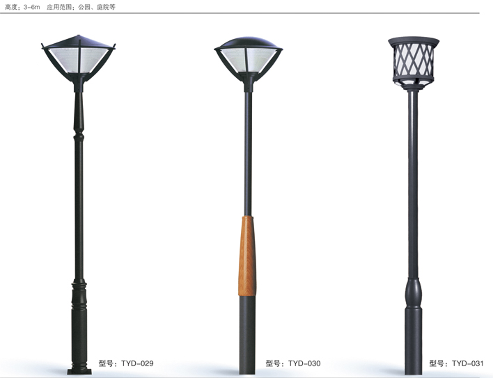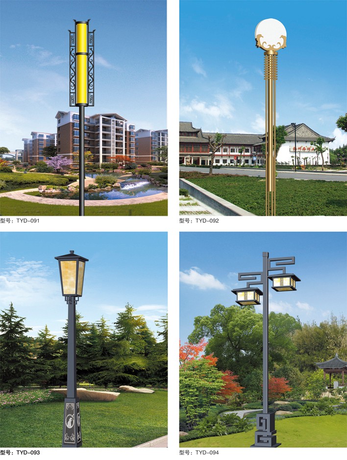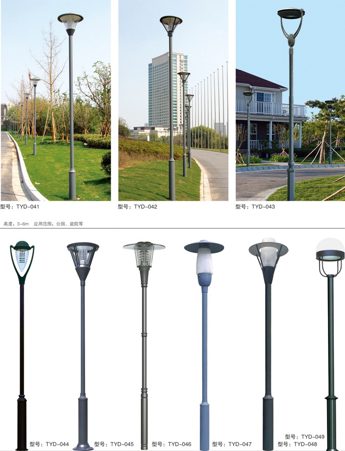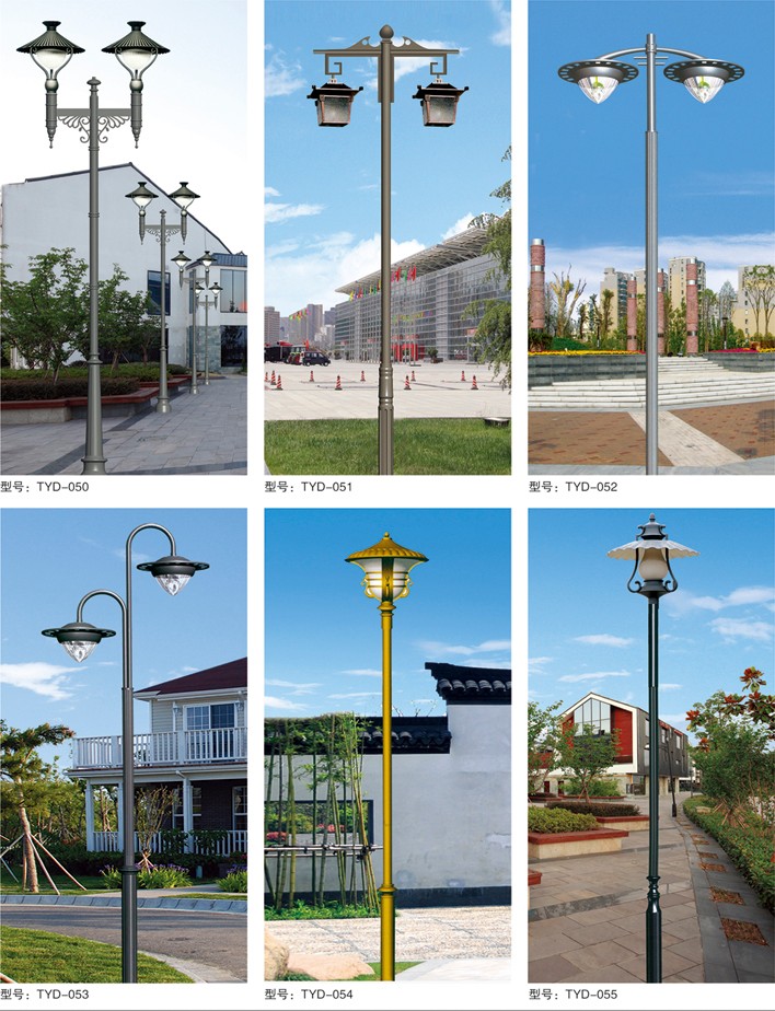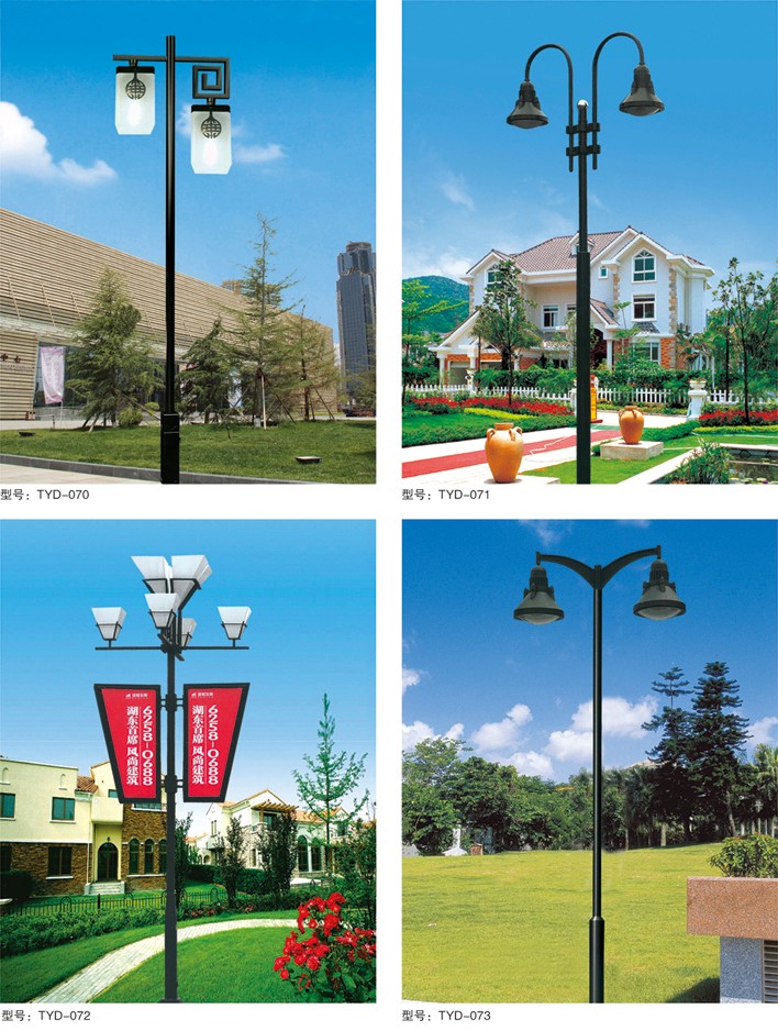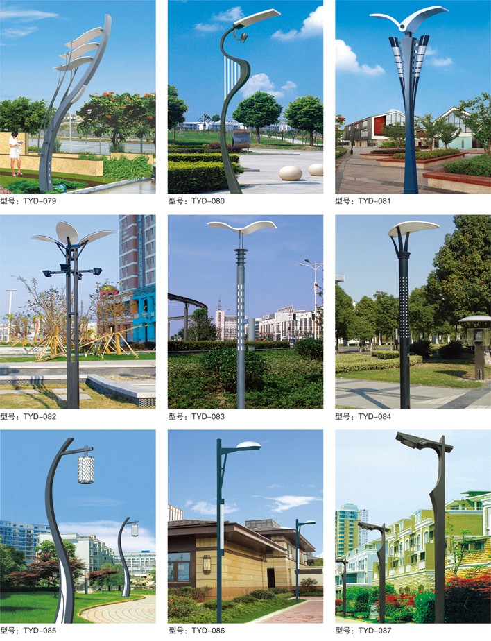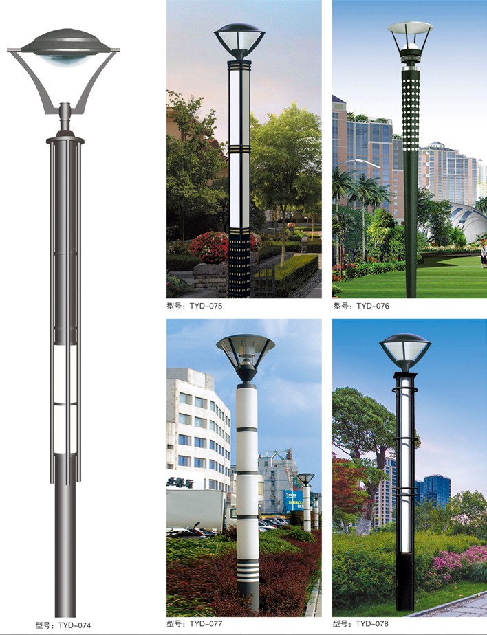 庭院燈系列燈飾照明是園林景區(qū)、文化休閑娛樂場所、步行街、商業(yè)街、住宅小區(qū)、行車道兩側(cè)等場所所普遍使用的裝飾及照明光源配置形式,是裝飾型照明燈飾產(chǎn)品。燈桿材質(zhì)多樣,光源運用靈活多變,結(jié)構(gòu)形態(tài)千姿百態(tài),是美化、亮化,綠化的有機結(jié)合,光與影。燈與藝術(shù)的完美結(jié)合。